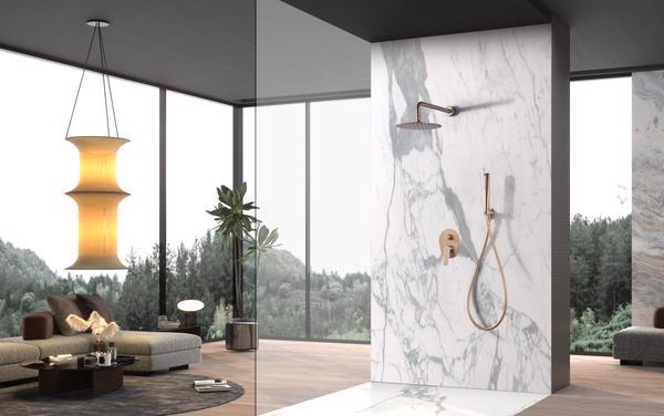 Set de duș încastrat cu monocomandă Delos, auriu roz periat