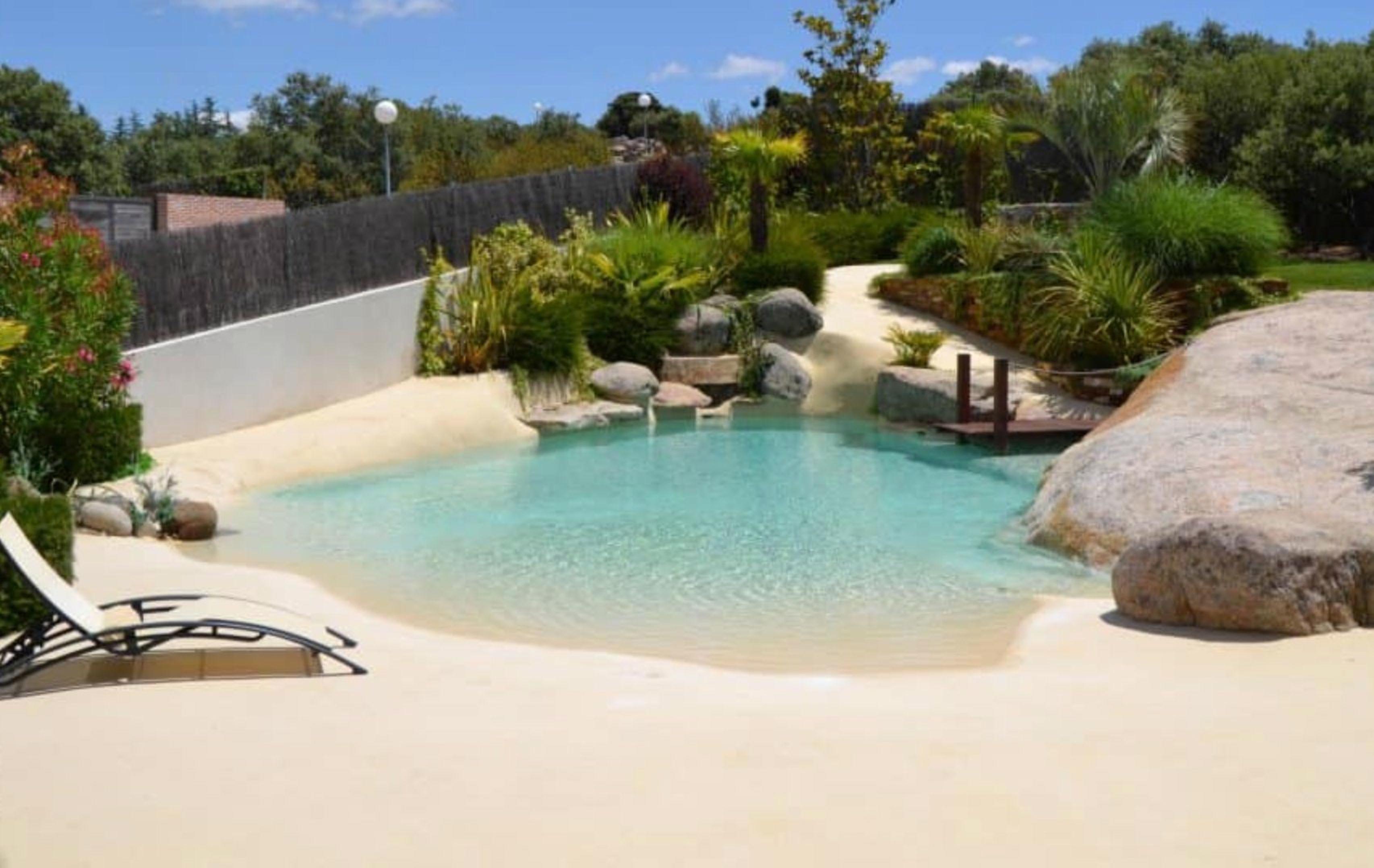 Antiderapant natural — textura granulară a pietrelor naturale asigură siguranță pe suprafețele umede ale piscinei.